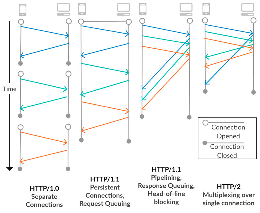- Multiplexed Stream: HTTP Pipeline의 개선으로 메세지를 Stream으로 송수신